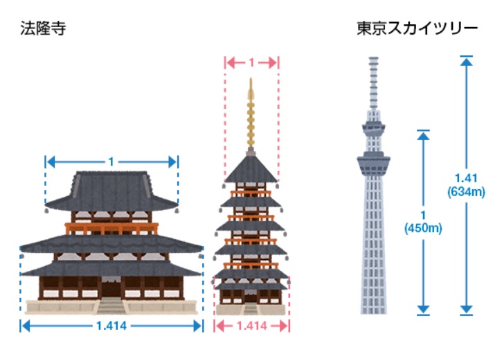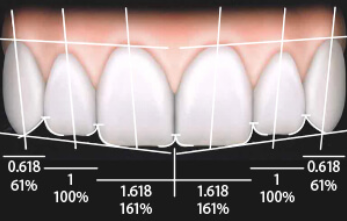 そのバランス=『黄金比』から、設計・デザインを行っています。黄金比は、レオナルド・ダ・ヴィンチの絵画やパルテノン神殿といった建造物に限ってのことではありません。ちなみに、日本人は黄金比(1:1.1618)より白銀比(1:1.1414)の方が好まれます。その例として、法隆寺金堂・五重塔や東京スカイツリー、そして菱川師宣が描いた「見返り美人」は白銀比で構成されています。もっと身近なもので言うと、ドラえもんやアンパンマンも白銀比です。歯の大きさは数字だけで表しきれないものであり、顔の大きさ等に作用されるので、黄金比か白銀比かはその臨床により異なります。キレイなスマイルラインを追求するには様々な要素と設備が必要になります。