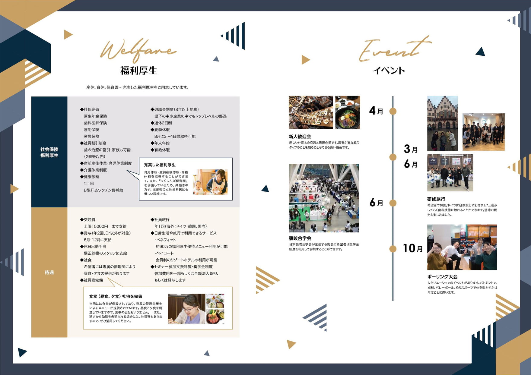 雇用保険、労災保険、歯科医師国保、厚生年金 制服貸与、交通費支給、駐車場手当、退職金制度(勤続3年以上) 等 |
