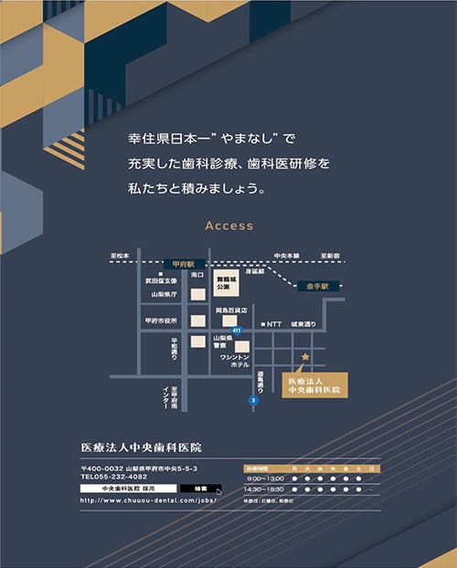 | 勤務地 | 中央歯科医院(山梨県甲府市中央5-5-3) |