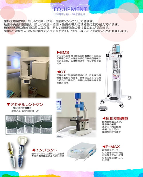 それから2~3年は、あっという間でした。中央歯科の器材も大きく変わり、各自のスキルアップに取り組む姿勢がより顕著になった気がします。どんどんデジタル化され、私としては、今はついていくのがやっとです。でも次々と新しい義歯や材質やインプラントなどいろいろな症例をみる事ができて、やりがいを感じています。 -