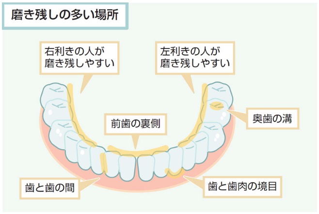 では、なぜ多くの人が毎日歯を磨いているにもかかわらず、歯周病になってしまうのでしょうか。その大きな理由のひとつが「磨き残し」です。歯ブラシを使って歯を磨いていても、実は歯と歯の間や歯ぐきの境目、奥歯の裏側などはブラシの毛先が届きにくく、汚れ(プラーク)が残りやすい場所です。こうしたプラークは細菌の塊であり、時間が経つと歯石に変化して、歯ぐきに炎症を起こします。これが歯周病のはじまりです。