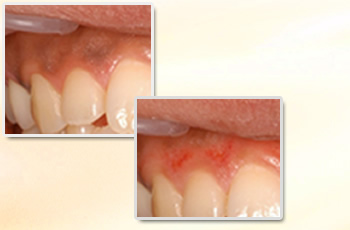 喫煙などによる歯ぐきのメラニンを除去し歯ぐきをピーリング。ピンク色の歯ぐきに施術します。
